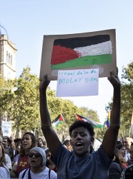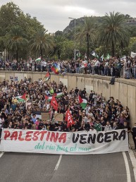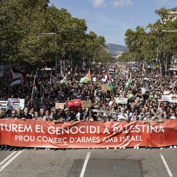 4 d'octubre de 2025 Multitudinària manifestació a Barcelona contra el genocidi del poble palestí i…
